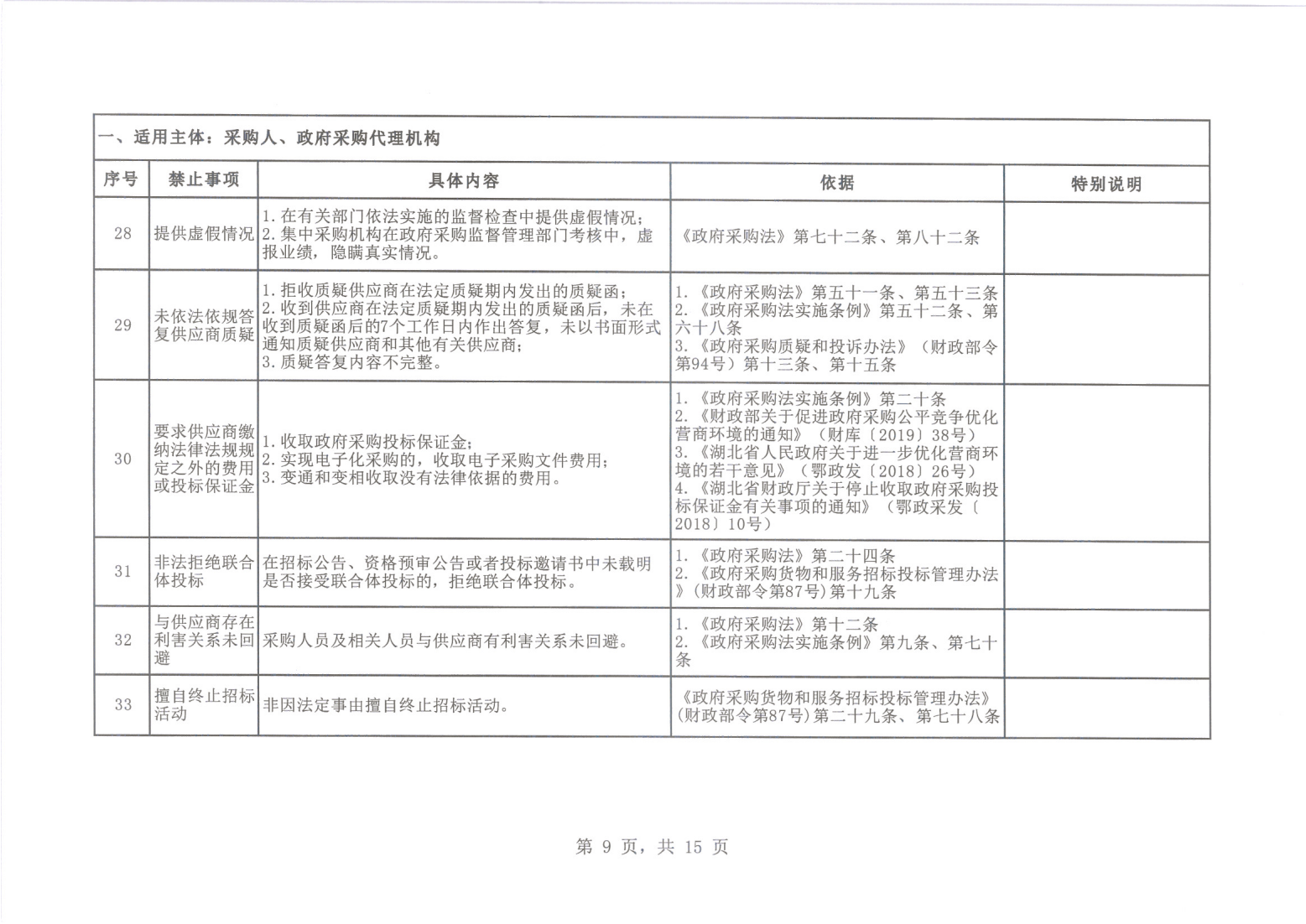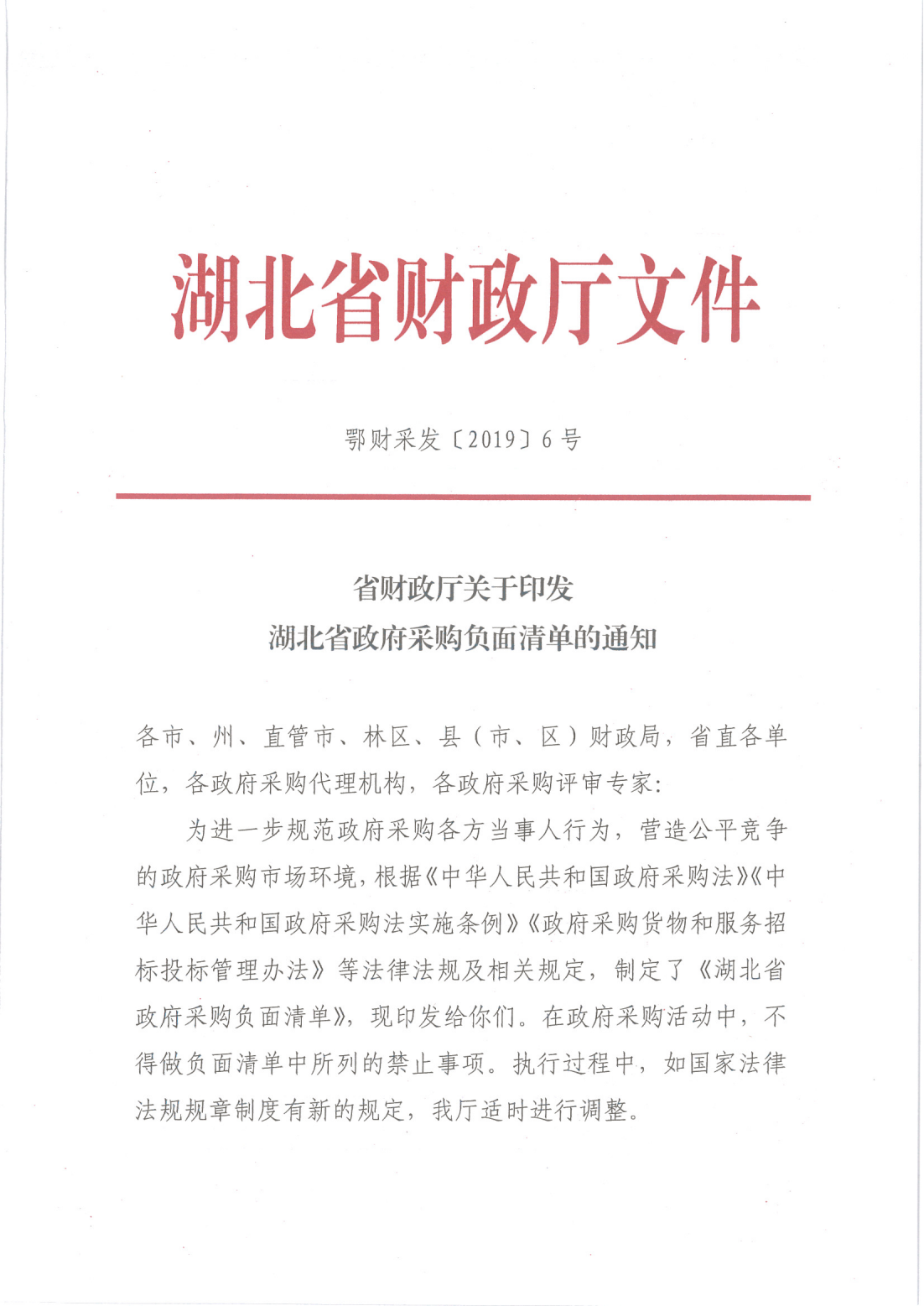 省財政廳關于印發湖北省政府采購負面清單的通知(鄂財采發〔2019〕6號)